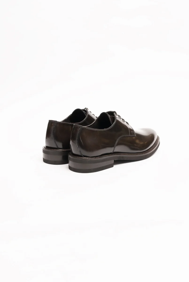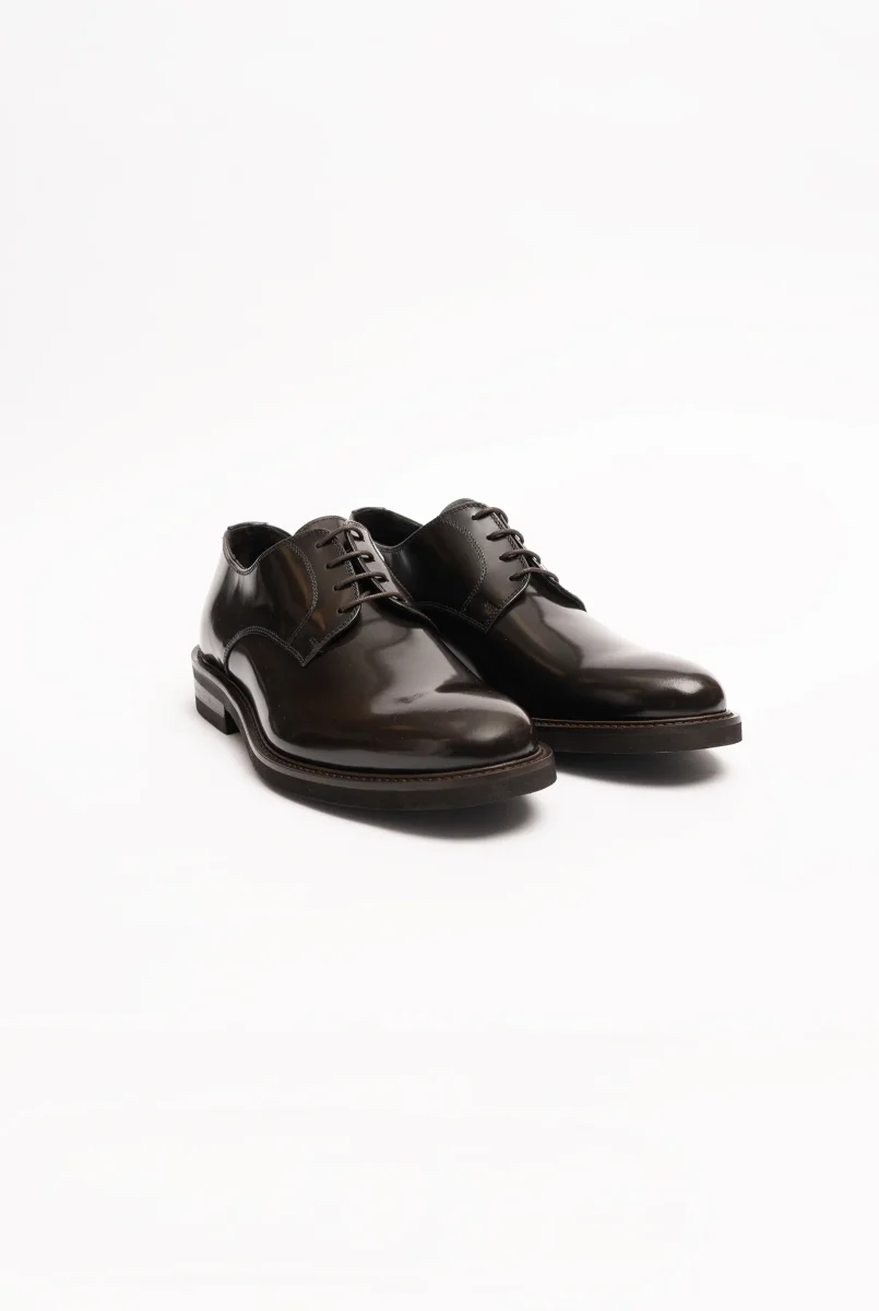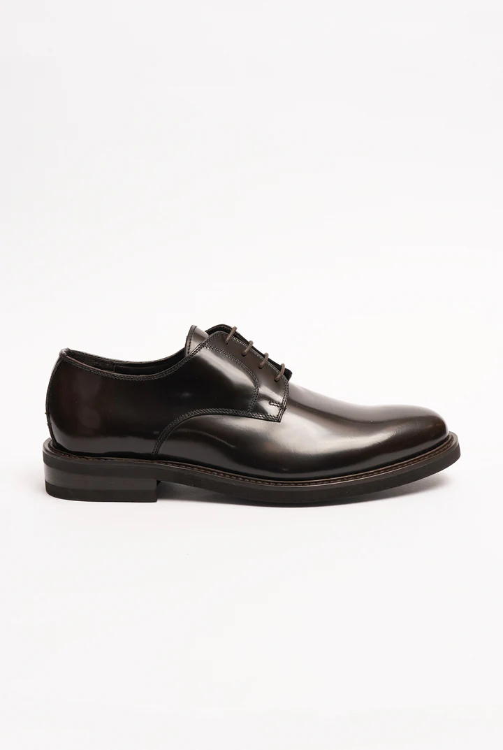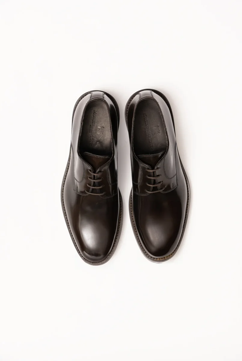 Scarpa derby in vitello spazzolato lucido testa di moro