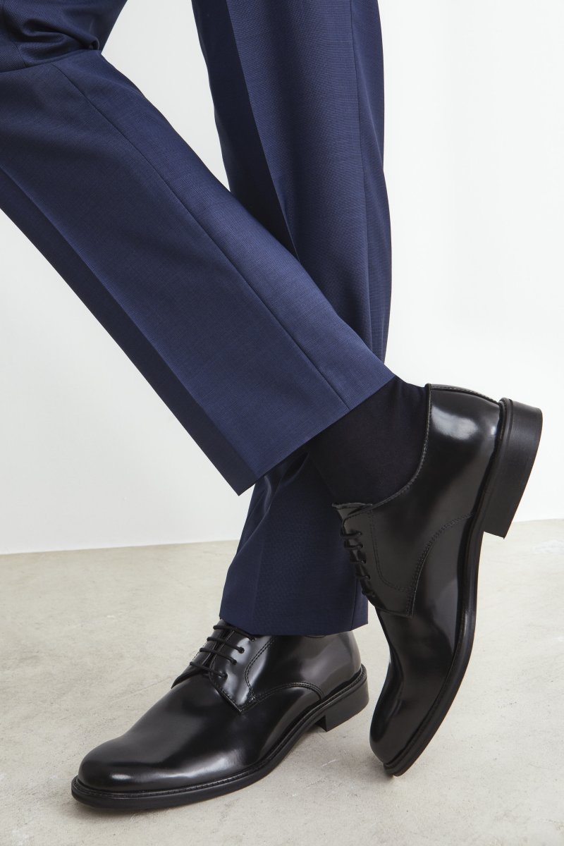 Scarpa nera in pelle da uomo modello church. Realizzata artigianalmente con pelle di alta qualitร , questa scarpa rappresenta la perfetta fusione di stile classico e comfort moderno. Ideale per occasioni speciali o per dare un tocco raffinato al tuo look quotidiano. Made in Italy. Il modello indossa la taglia 44.