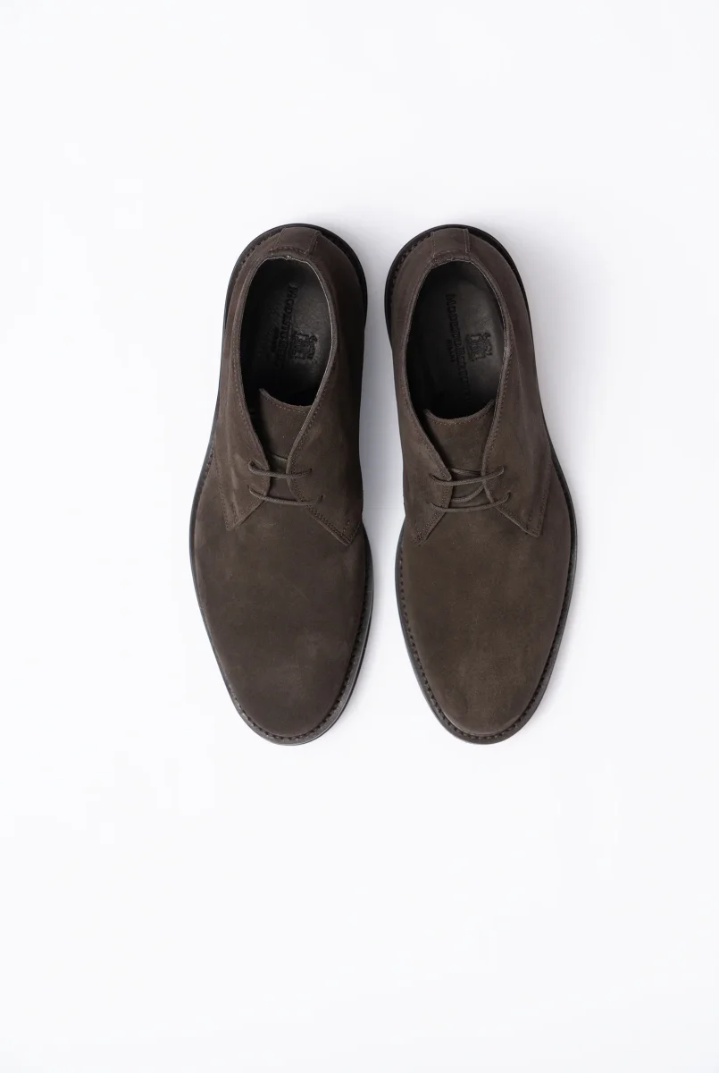 Le Scarpe Polacchino di Modesto Bertotto sono progettate e realizzate interamente a mano da artigiani in Italia. La pelle di vitello scamosciato viene trattata per diventare idrorepellente. La soletta interna permette un comfort elevato che unito alla suola in gomma traspirante rende il prodotto adatto ad un utilizzo prolungato senza affaticare il piede durante la giornata.