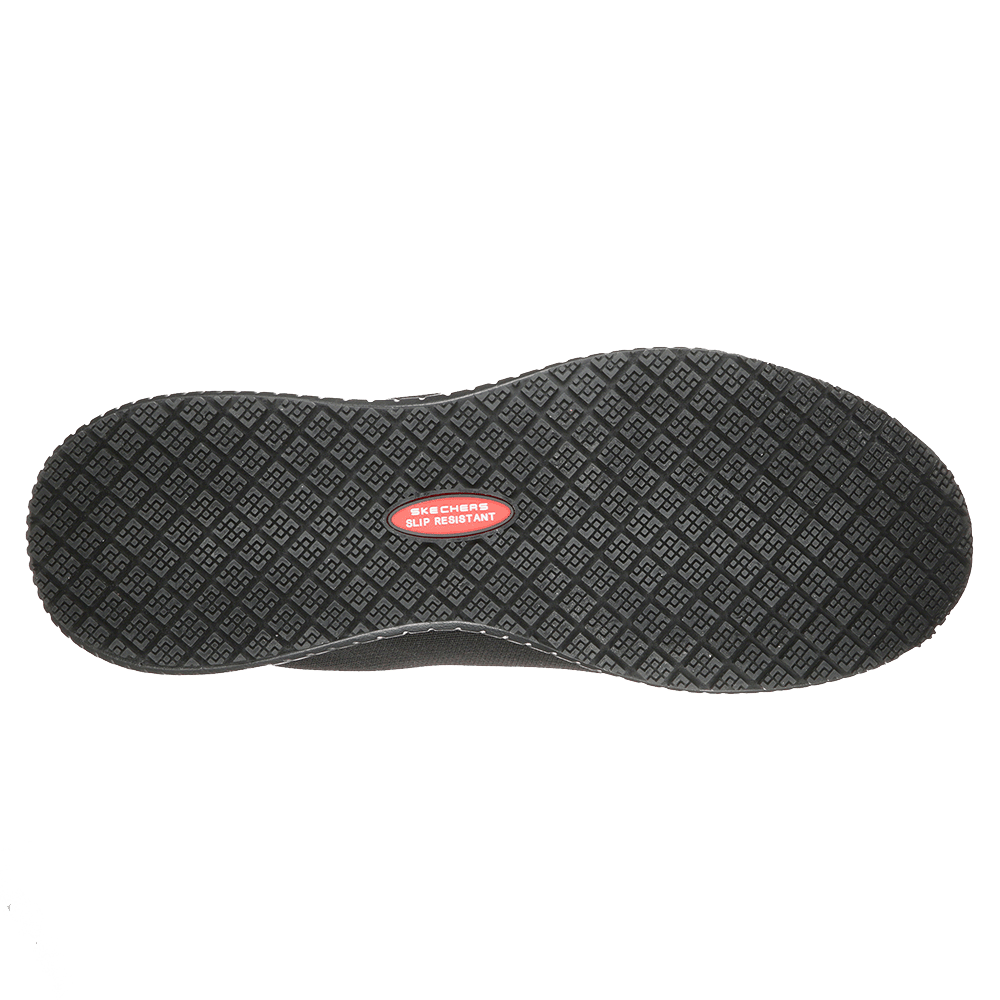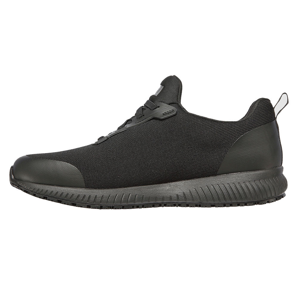 Soletta ammortizzata e confortevole Skechers Air-Cooled Memory Foamยฎ Tomaia in mesh e materiale sintetico resistente Suola di trazione (SRC) resistente all’olio e alla benzina, antiscivolo Tacco 2,5 cm STANDARD: EN ISO 20347 : 2012 CATEGORY: OB E SRC