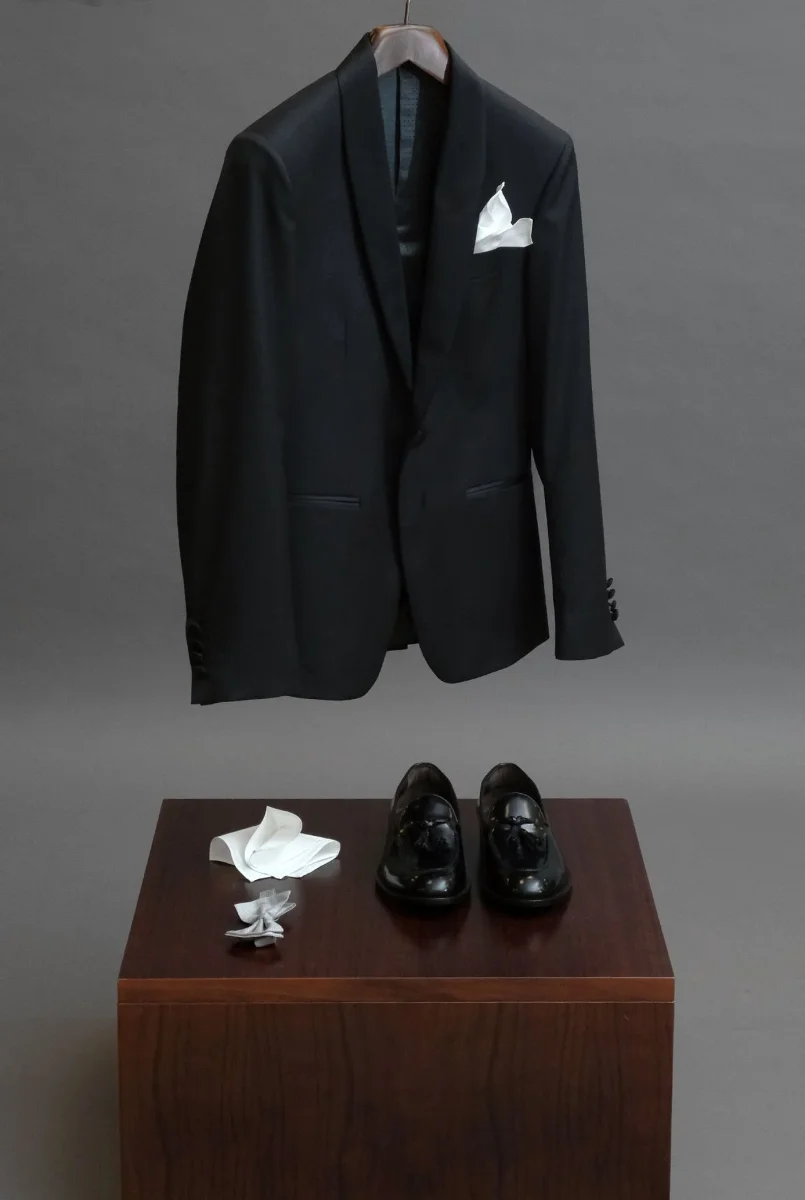 L’abito รจ altamente traspirante anche nelle giornate piรน calde e molto performante essendo trattato per essere antipiega e total easy care.Smoking con rever a scialle punta spillo nero 130’s colore nero, collo sciallato in raso di seta nero, tasche a filetto con dettaglio in raso di seta nero, cintura pantalone di raso in seta nero, […]