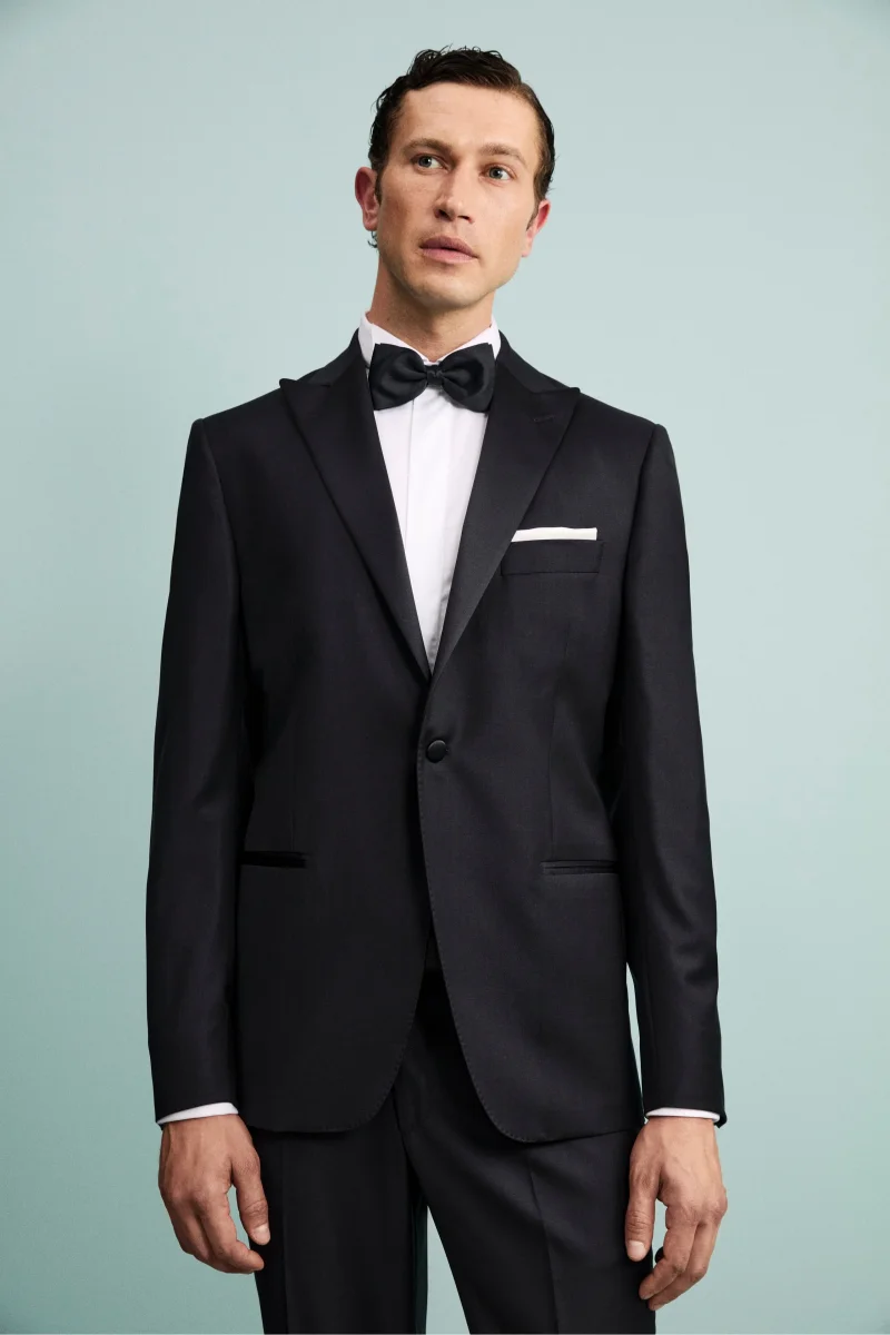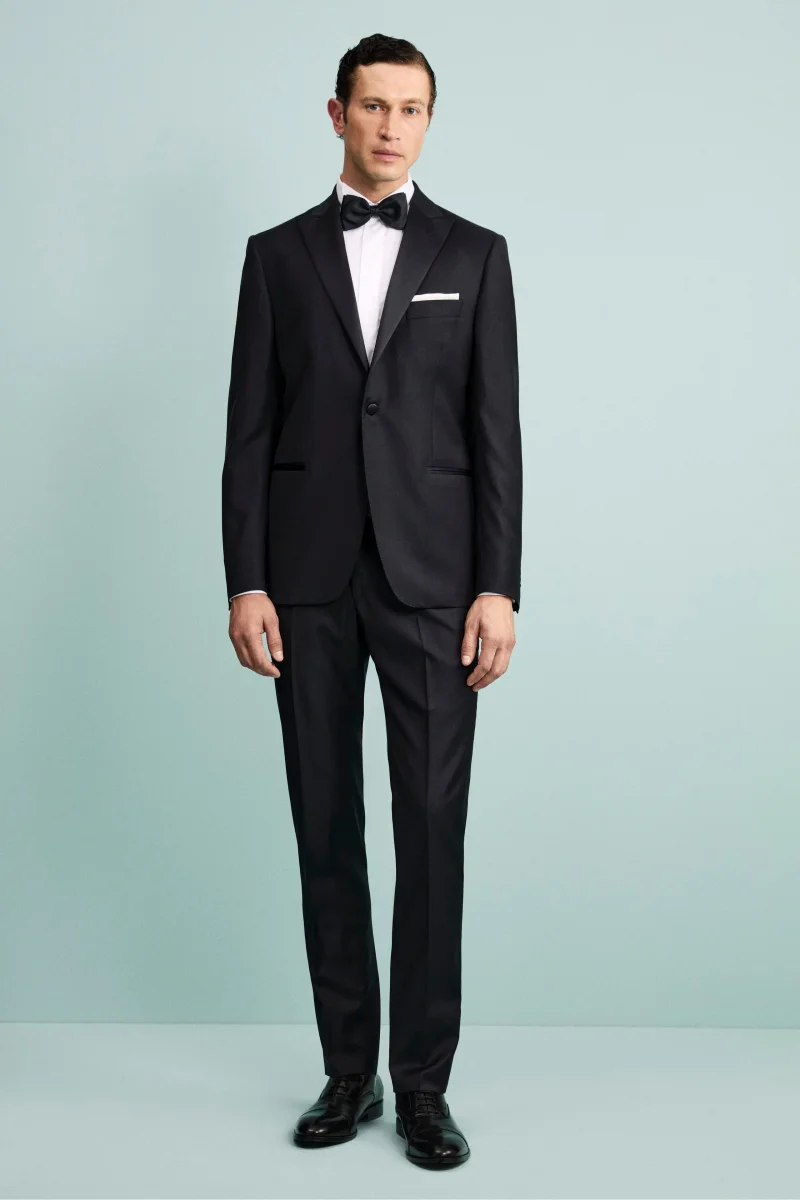 Realizzato in 100% lana vergine con lโesclusivo tessuto Nobility 150โs del Lanificio F.lli Cerruti dal 1881, questo smoking rappresenta lโeccellenza dellโeleganza formale. La giacca monopetto presenta una chiusura a un bottone, revers a lancia in raso, taschino a taglio sul cuore per la pochette e tasche anteriori a filetto. Completamente foderata, garantisce comfort e raffinatezza […]