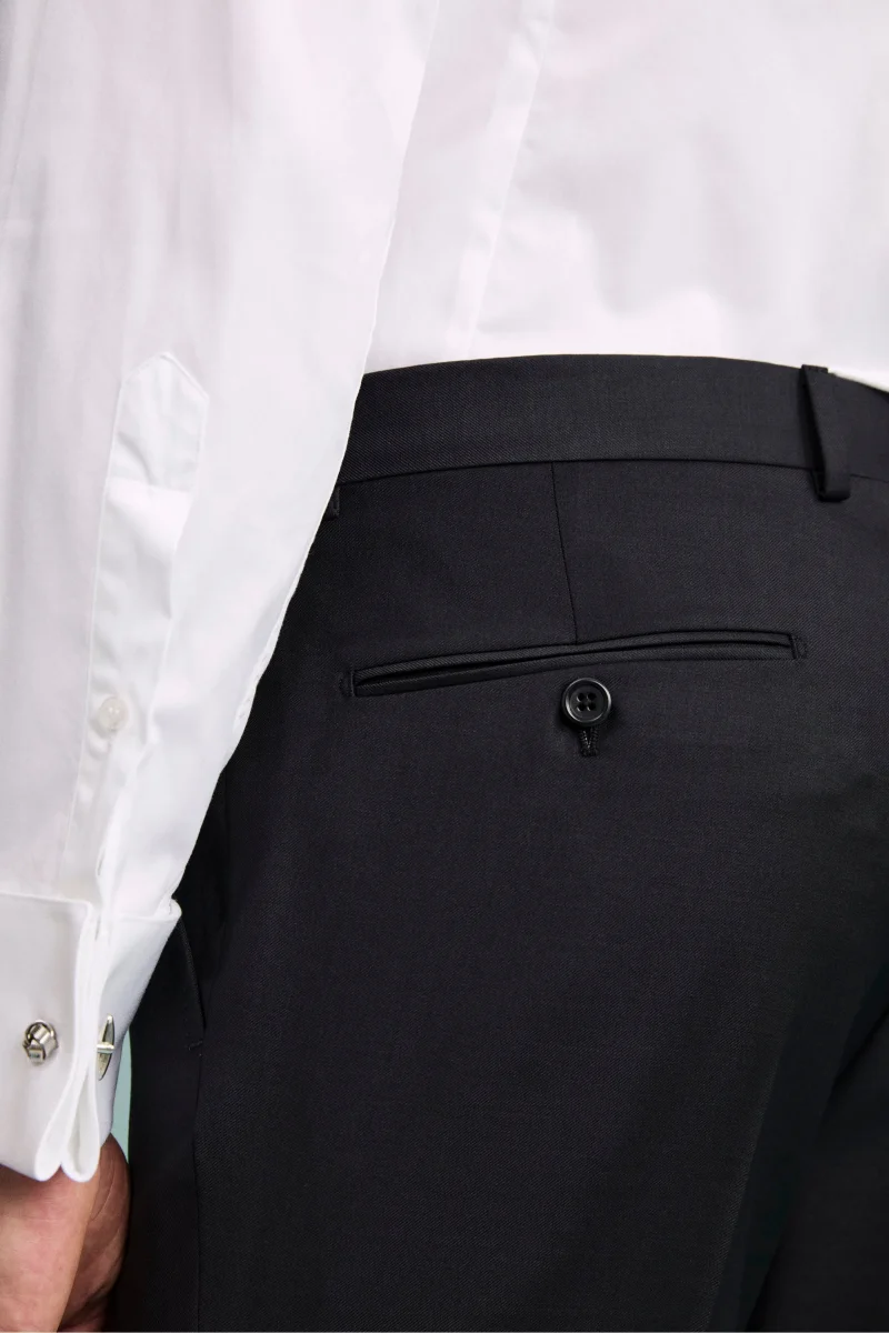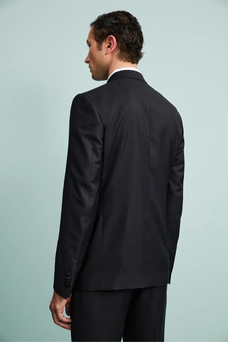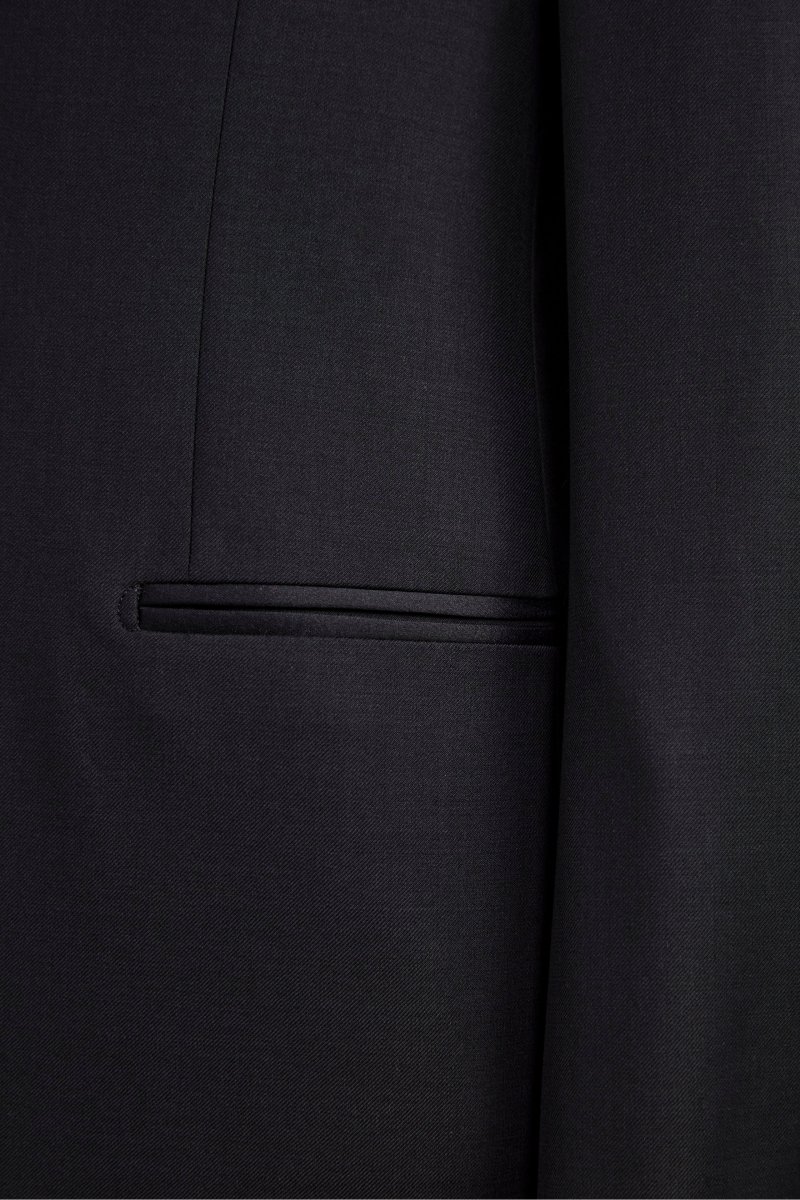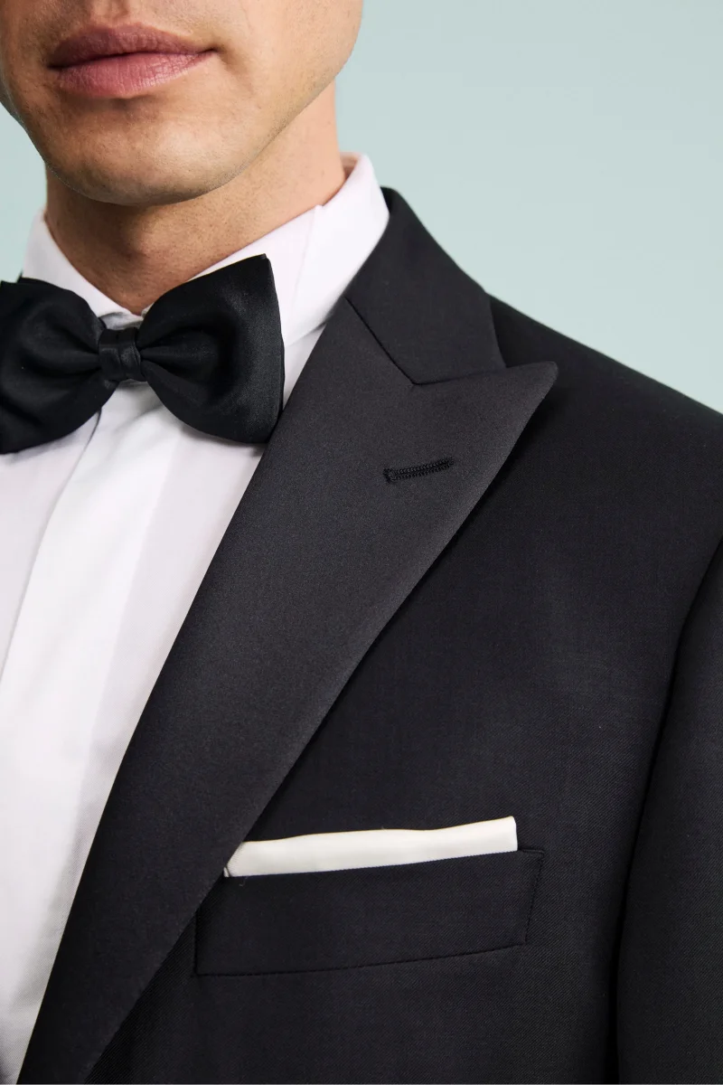 Realizzato in 100% lana vergine con lโesclusivo tessuto Nobility 150โs del Lanificio F.lli Cerruti dal 1881, questo smoking rappresenta lโeccellenza dellโeleganza formale. La giacca monopetto presenta una chiusura a un bottone, revers a lancia in raso, taschino a taglio sul cuore per la pochette e tasche anteriori a filetto. Completamente foderata, garantisce comfort e raffinatezza in ogni stagione. Il pantalone coordinato รจ rifinito con tasche America, chiusura frontale con bottone e fibbia, passanti per cintura e tasche posteriori a filetto con bottone. Parte della collezione IL Lanificio, questo smoking da uomo Made in Italy รจ perfetto per cerimonie di gala, eventi esclusivi o occasioni serali che richiedono un look impeccabile. Indossalo con camicia da smoking, papillon in raso nero e scarpe verniciate per un outfit formale di altissimo livello. Slim Fit e Drop 8. Il modello รจ alto 189 cm e indossa la taglia 50.