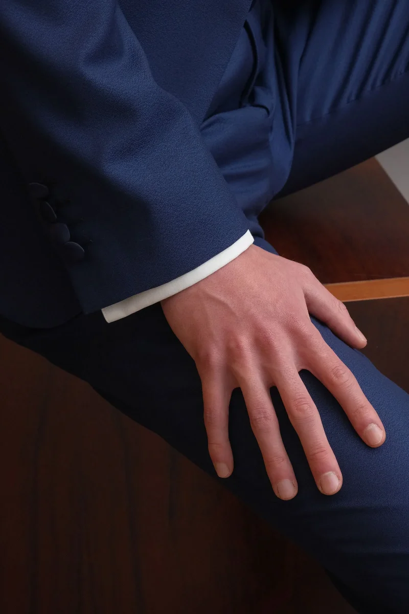 L’abito è altamente traspirante anche nelle giornate più calde e molto performante essendo trattato per essere antipiega e total easy care.Smoking in sablè di lana 130’s colore blu avio, rever collo sciallato in raso di seta blu,tasche a filetto con dettaglio in raso di seta blu, bottoni rivestiti in raso di seta blu, cintura pantalone […]