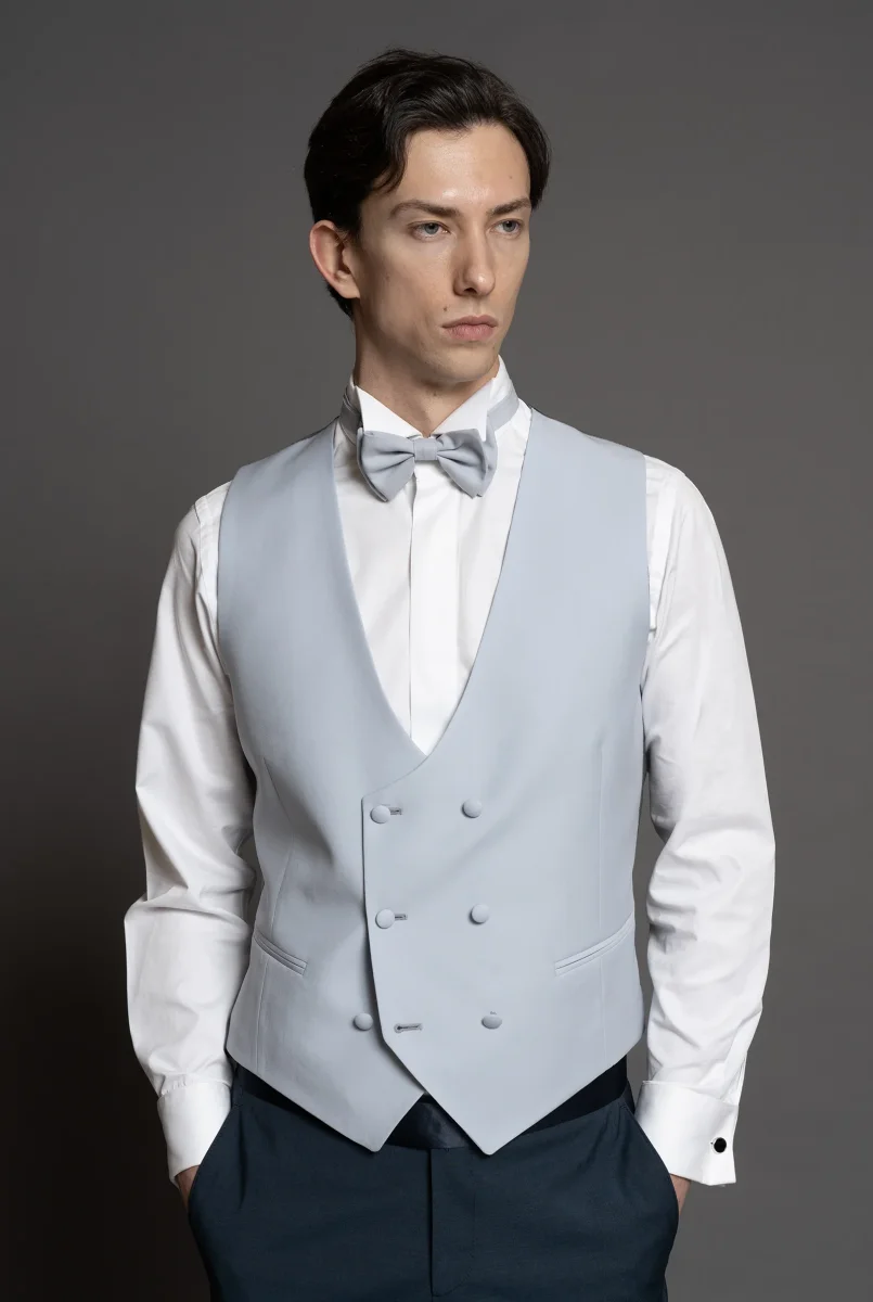 Gilet doppiopetto in lana super fine color grigio gesso.