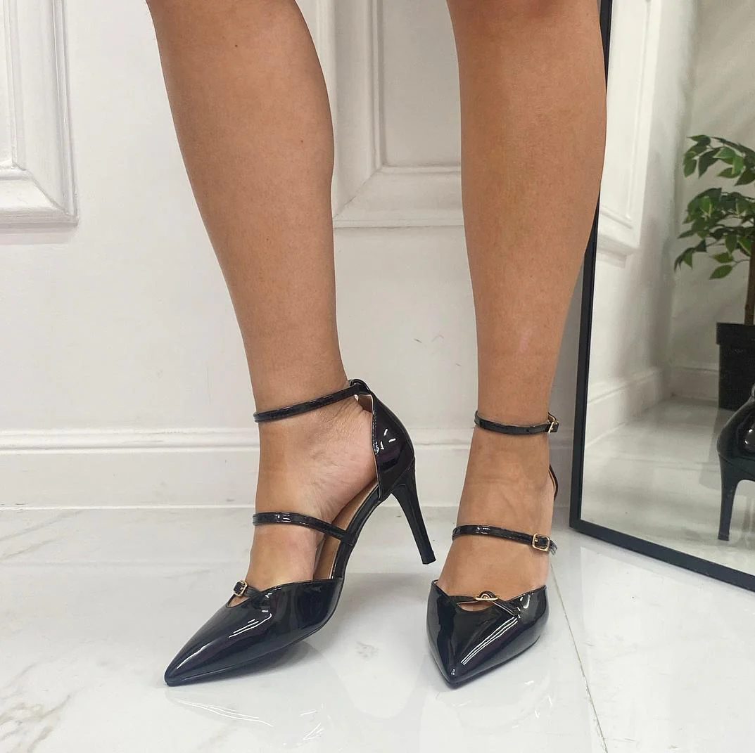 Sofia – Décolleté Donna Cinturini Tacco Spillo Elegante Vernice Nero