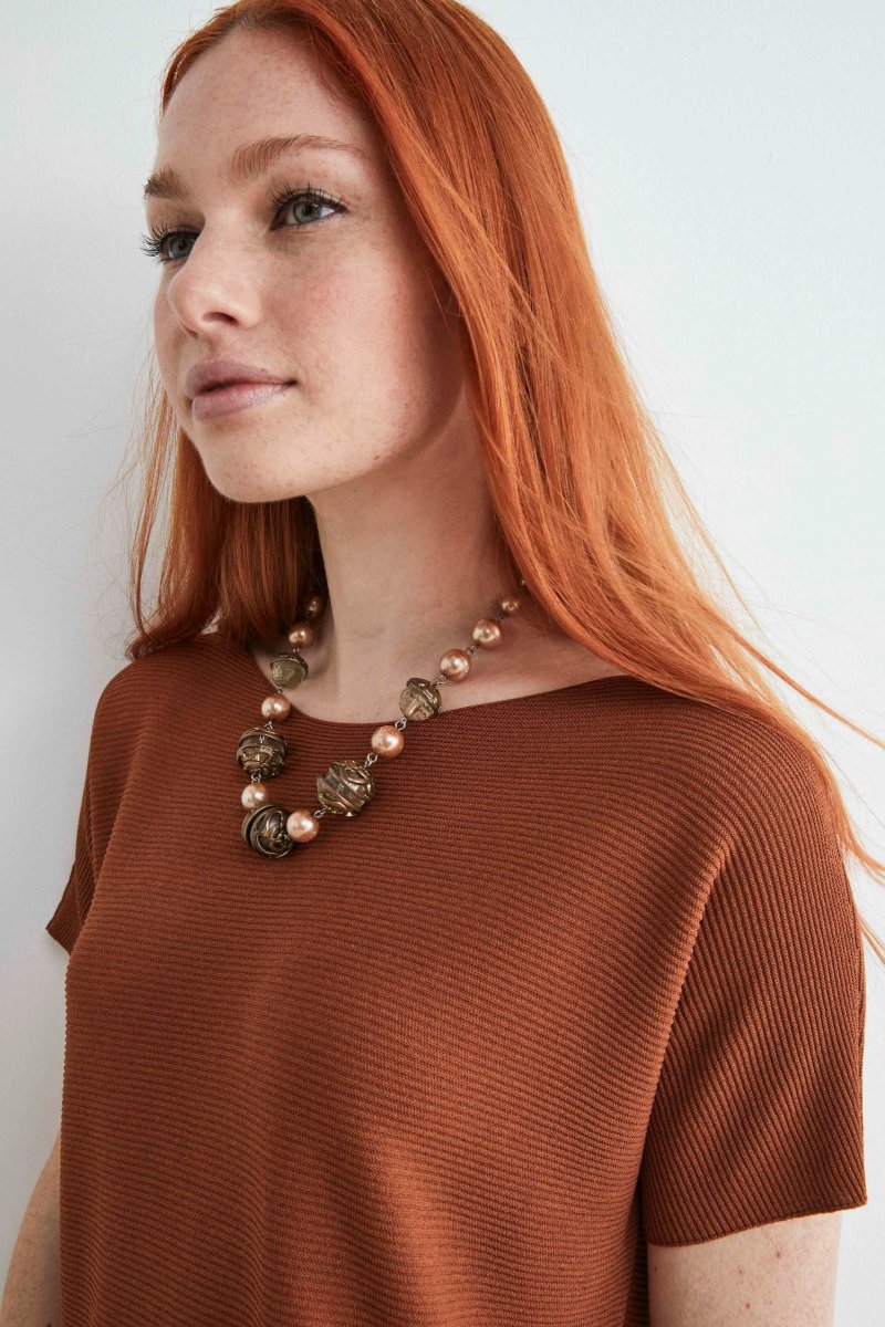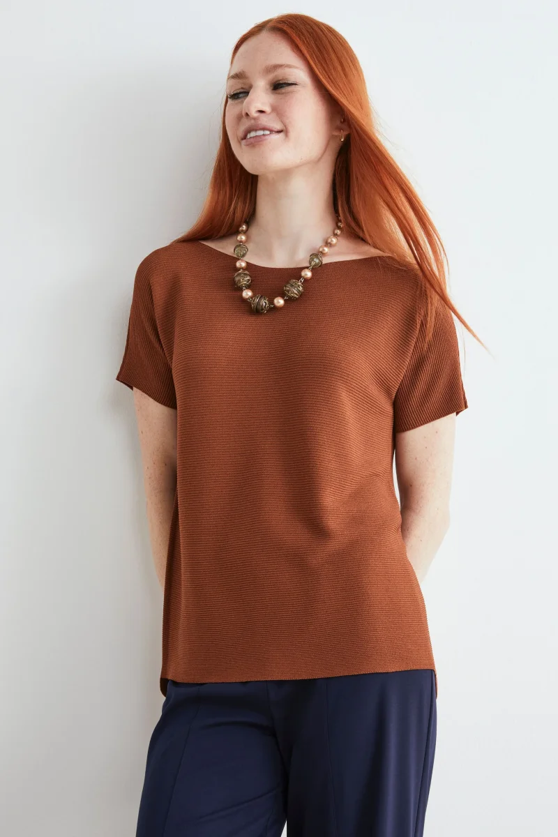T-shirt con scollo a barchetta – TABACCO