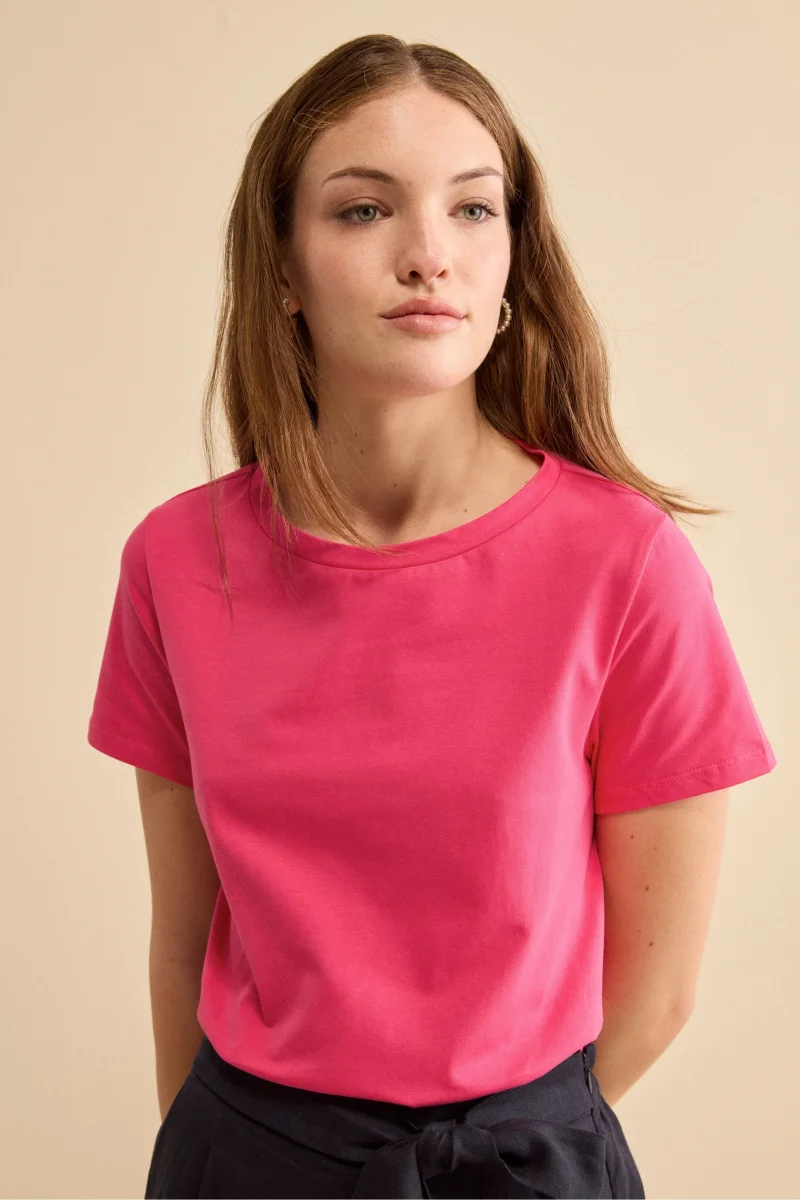 T-Shirt Girocollo in Cotone Elasticizzato – FUXIA
