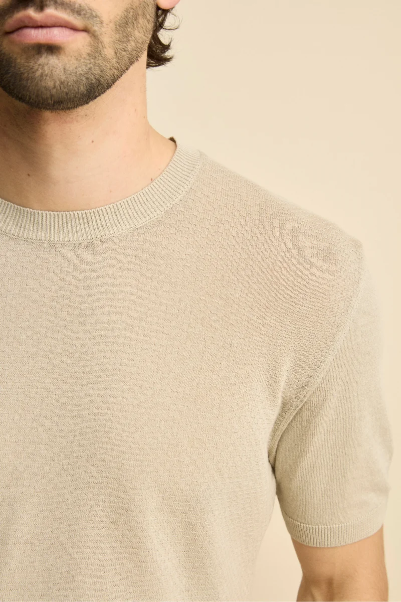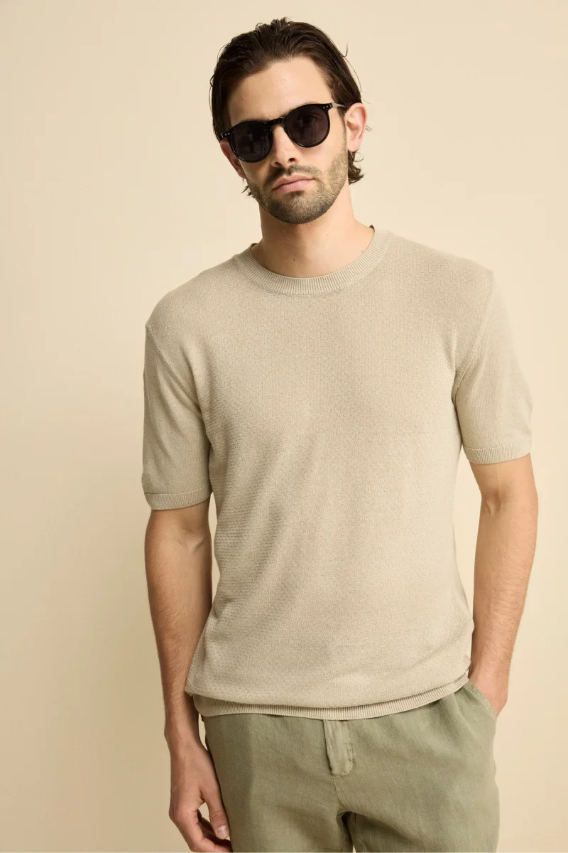 Leggera e confortevole, questa T-Shirt Girocollo da uomo in Misto Lino รจ un capo essenziale per il guardaroba estivo maschile. Realizzata in maglia di misto lino, assicura freschezza e traspirabilitร ideali per la stagione calda, con una texture naturale e raffinata. Il design presenta un classico girocollo, mezze maniche e una vestibilitร regolare, con bordi lavorati a coste verticali. La costruzione in maglia dona fluiditร e comfort al movimento. Parte della collezione IL Lanificio, รจ perfetta con un bermuda in cotone operato, un pantalone in lino con coulisse o sotto una giacca sfoderata per un look casual chic. Il modello รจ alto 189 cm e indossa la taglia 50.