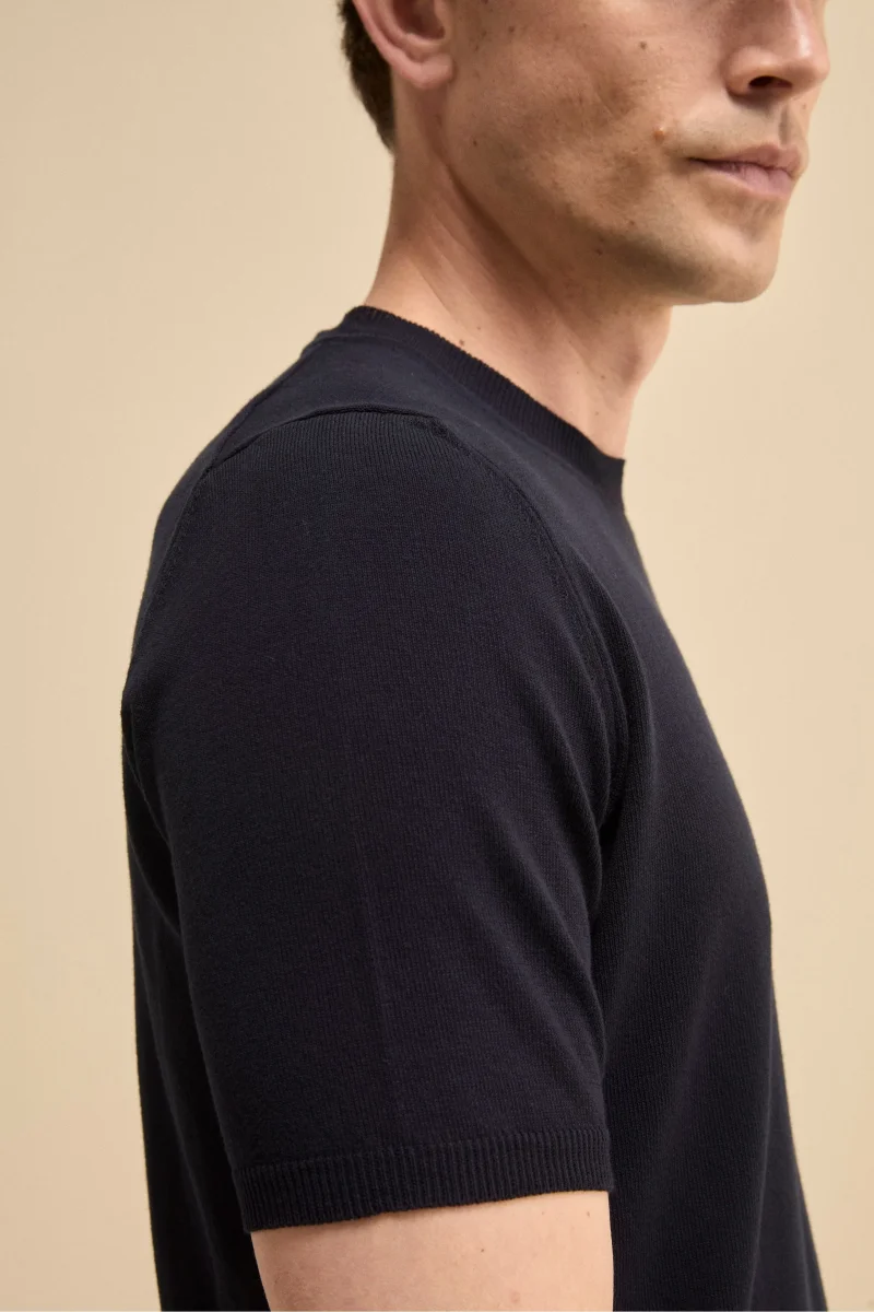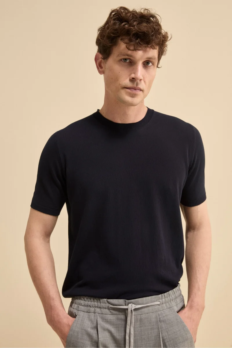 Questa t-shirt da uomo è realizzata in 100% cotone crêpe finezza 14, un filato leggero e traspirante che dona al capo una texture asciutta e sofisticata. Il design pulito è arricchito da bordi lavorati a coste e da una vestibilità regolare che garantisce comfort e versatilità. Parte della collezione IL Lanificio e interamente Made in […]