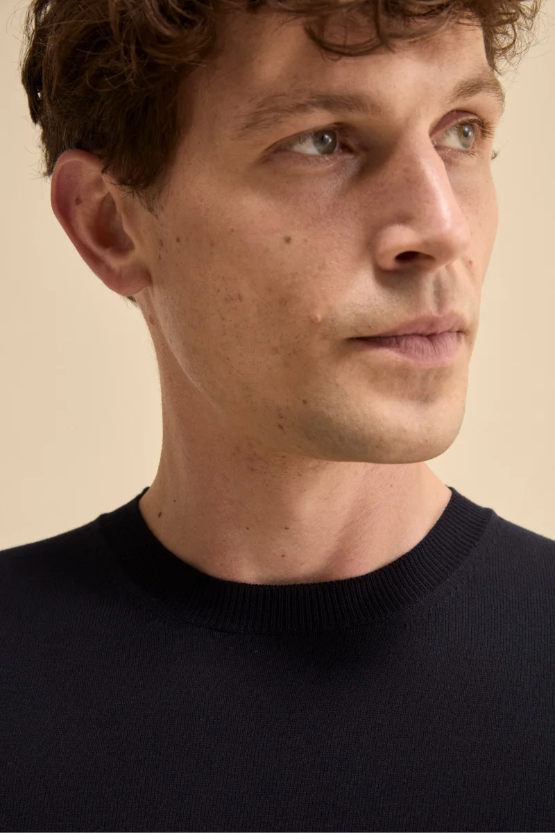 Questa t-shirt da uomo è realizzata in 100% cotone crêpe finezza 14, un filato leggero e traspirante che dona al capo una texture asciutta e sofisticata. Il design pulito è arricchito da bordi lavorati a coste e da una vestibilità regolare che garantisce comfort e versatilità. Parte della collezione IL Lanificio e interamente Made in Italy, è perfetta da abbinare a pantaloni chino, denim o sotto una giacca leggera per un look casual ma raffinato, ideale nelle giornate primaverili o estive. Il modello è alto 189 cm e indossa la taglia 50.