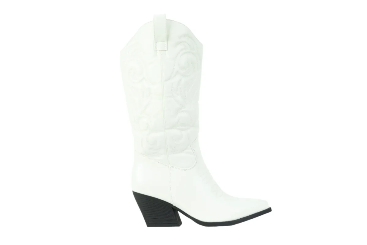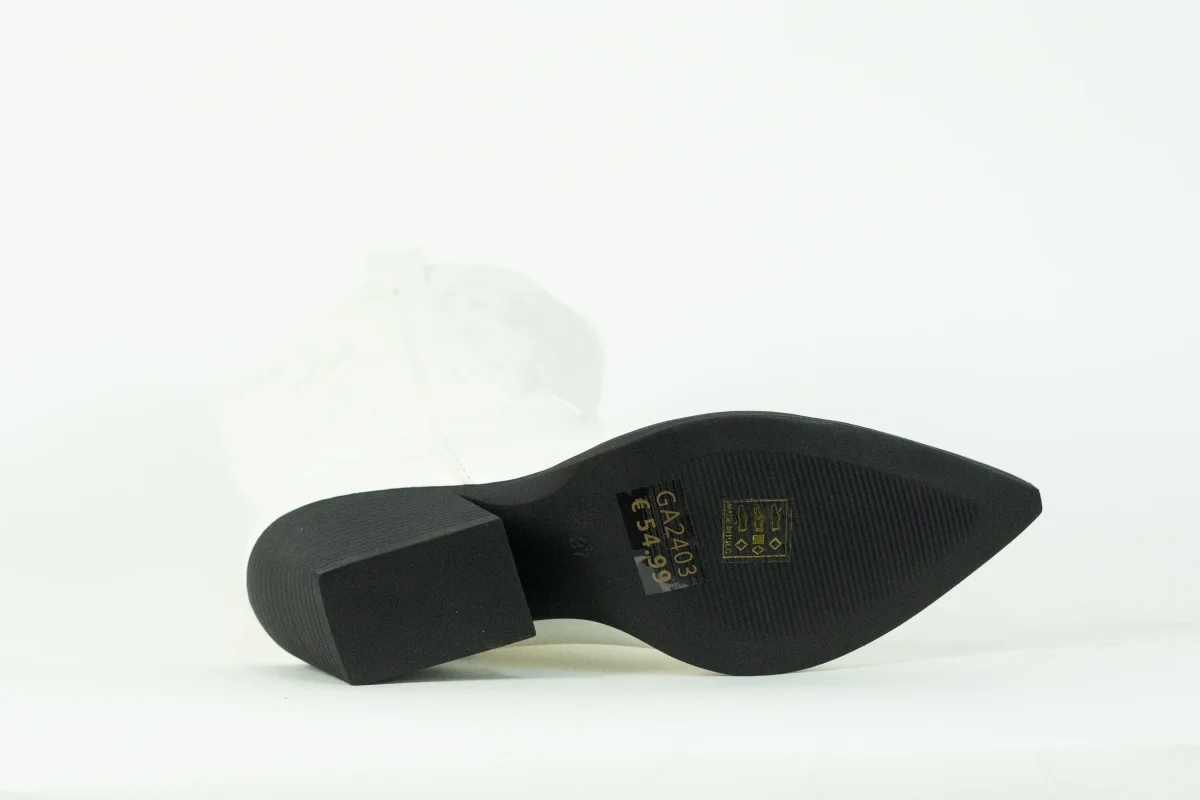 Stivaletti texani in pelle, disponibili in bianco o nero, con tacco di 7 cm. Eleganti e chic, aggiungono un tocco di classe a ogni outfit. Versatili e comodi, perfetti per ogni occasione.