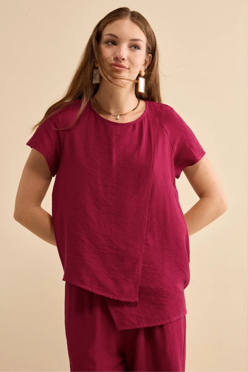 Top Girocollo Asimmetrico con Mezza Manica – BORDEAUX