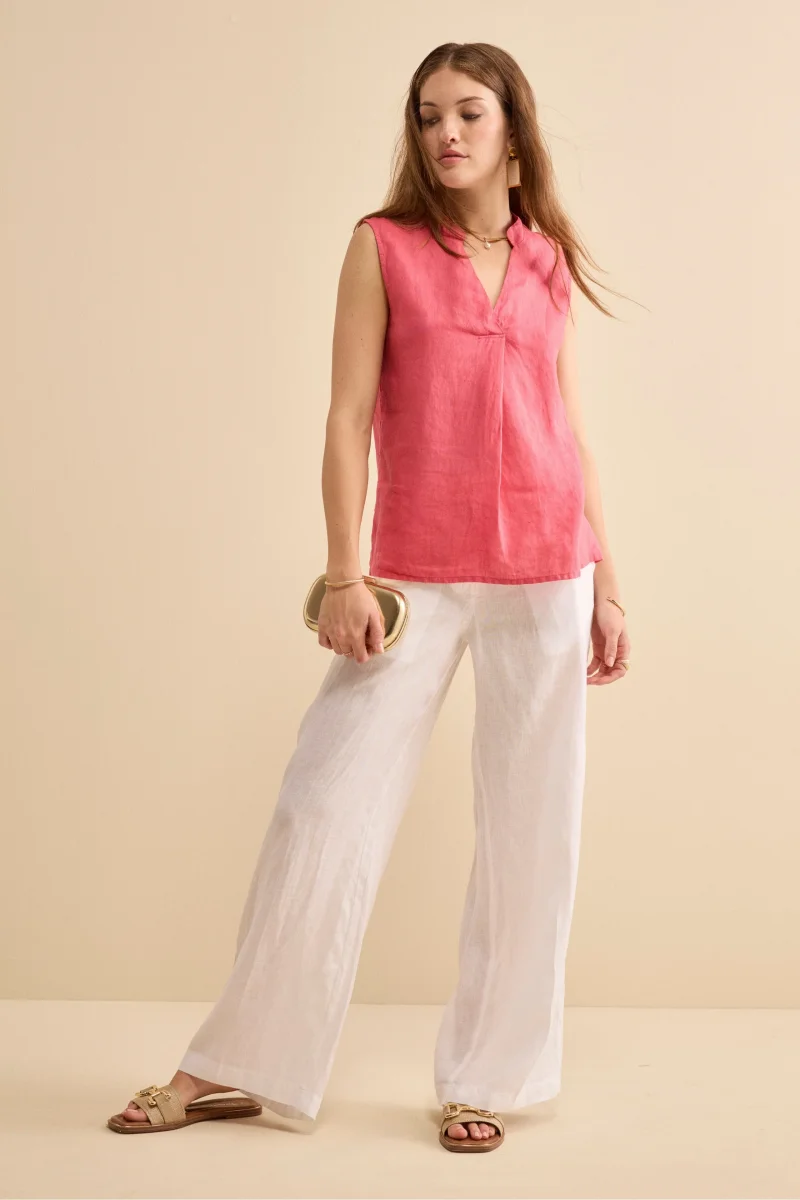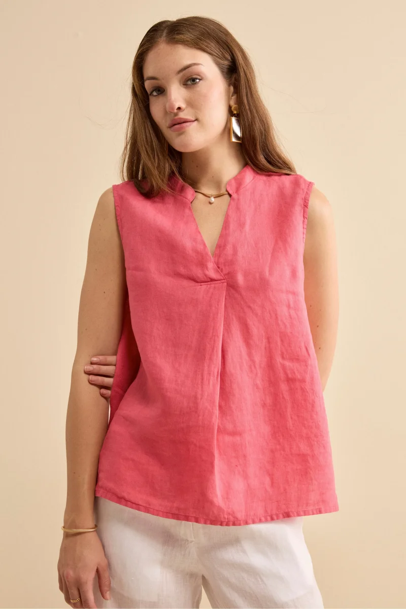 Top Incrociato in Lino con Scollo a V – CORALLO