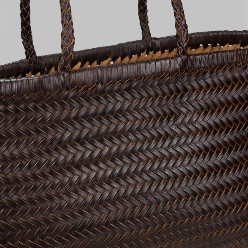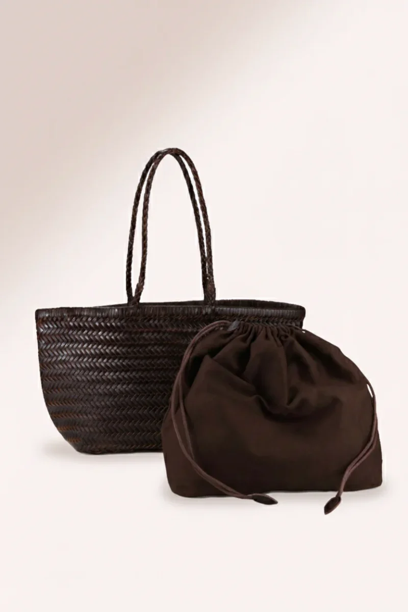 Tote bag elegante e capiente, realizzata in 100% pelle intrecciata a mano. Un accessorio raffinato che unisce artigianalitร  italiana, stile senza tempo e funzionalitร  quotidiana. Dotata di pratica coulisse interna removibile, ideale per custodire i tuoi effetti personali con ordine e sicurezza.