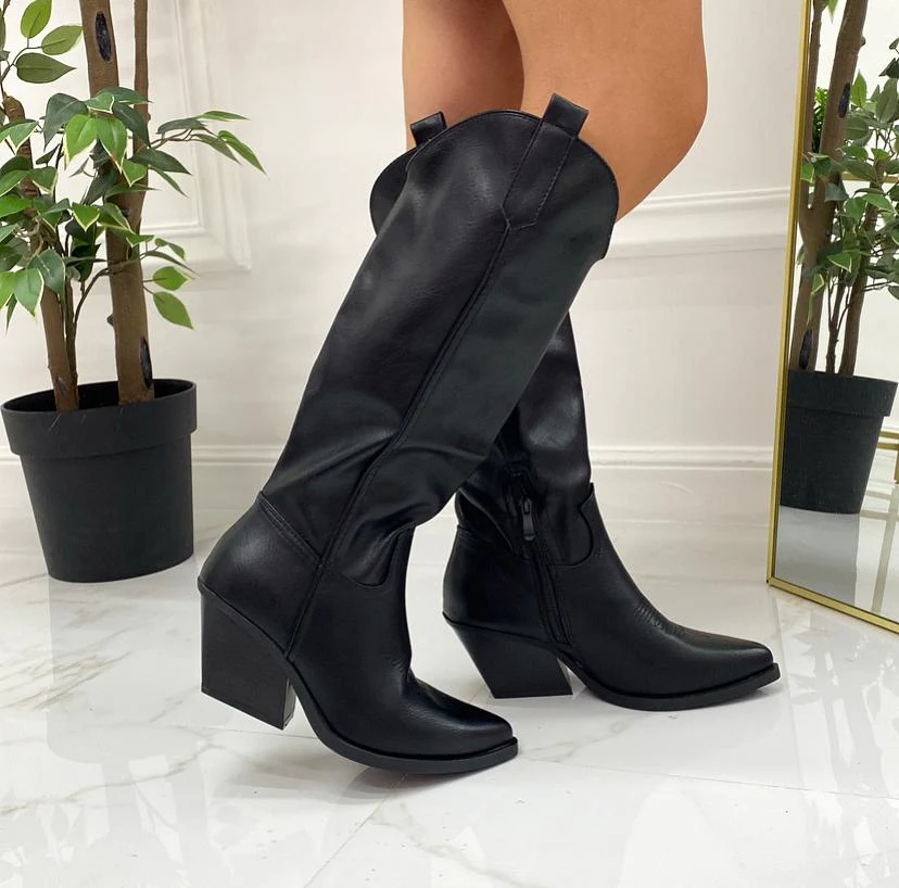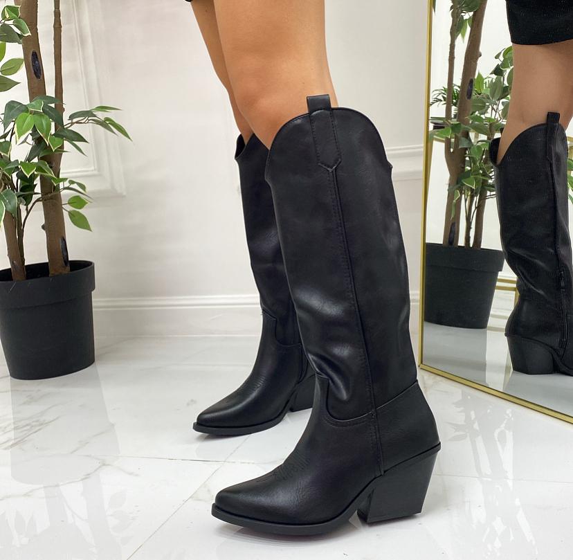 Tracy – Stivale Donna Texano Alto Tacco Punta Casual Nero