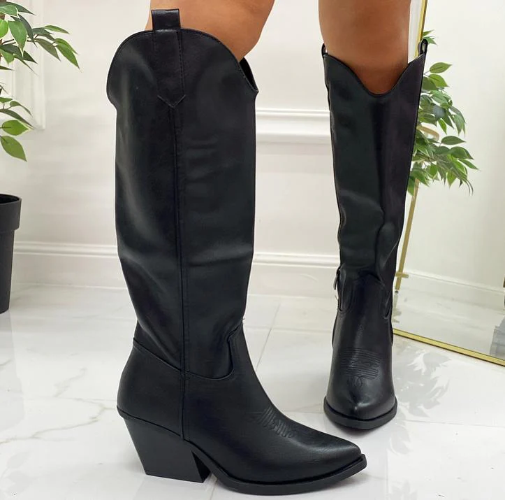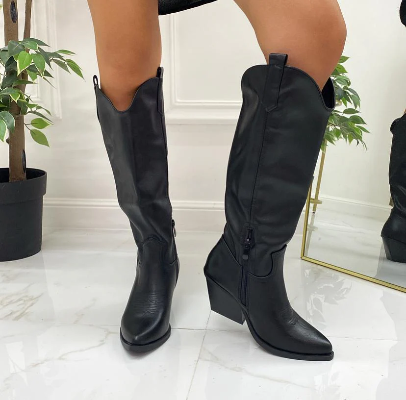 Allison – Stivale Donna Basso Texani Tacco Punta Nero