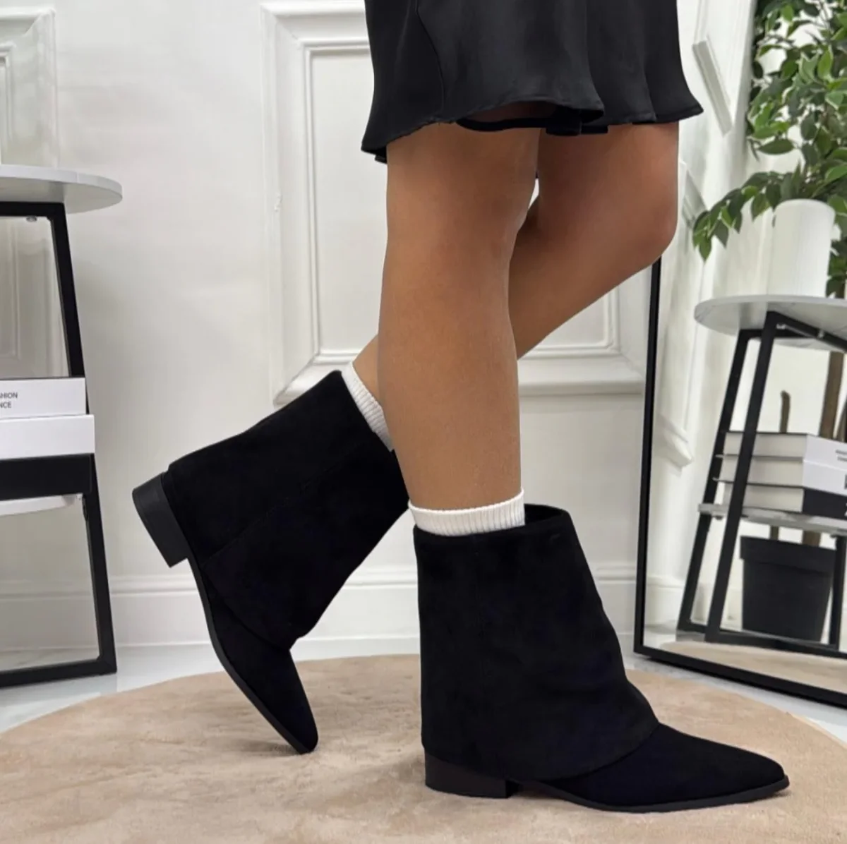 Stivaletto dal design moderno e minimal, caratterizzato da una punta affusolata e una linea morbida che avvolge delicatamente la caviglia. Realizzato con materiali di alta qualitร , offre comfort e stile in ogni occasione. Il tacco basso e stabile garantisce una calzata comoda, perfetta sia per look casual che piรน ricercati. Un modello versatile che aggiunge un tocco chic e contemporaneo a ogni outfit.