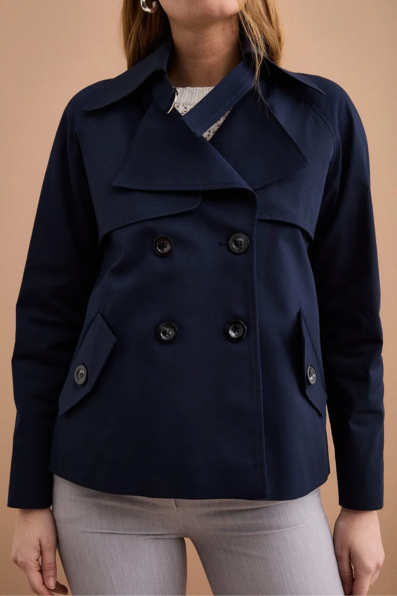 Trench Corto Doppiopetto in Cotone – BLU