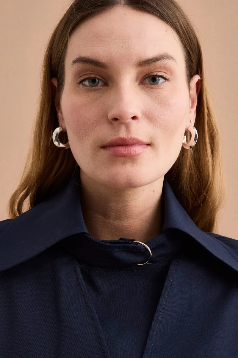 Trench corto doppiopetto in cotone da donna, il capospalla ideale per la stagione primavera estate, pensato per unire eleganza e funzionalitร  in un design contemporaneo. Realizzato in cotone di qualitร  e completamente foderato, presenta vestibilitร  regolare e linea leggermente svasata sul fondo che valorizza la silhouette con equilibrio. Il revers con colletto a camicia, i pannelli sulle spalle e la chiusura doppiopetto definiscono unโ€™estetica classica reinterpretata in chiave moderna, mentre le tasche laterali con pattina e bottone aggiungono praticitร  al capo. Parte della collezione Il Lanificio e interamente Made in Italy, si abbina con naturalezza a pantaloni a palazzo o gonne lunghe per un look raffinato da giorno, oppure a denim e maglieria leggera per uno stile casual chic versatile. La modella รจ alta 178 cm e indossa la taglia 42.