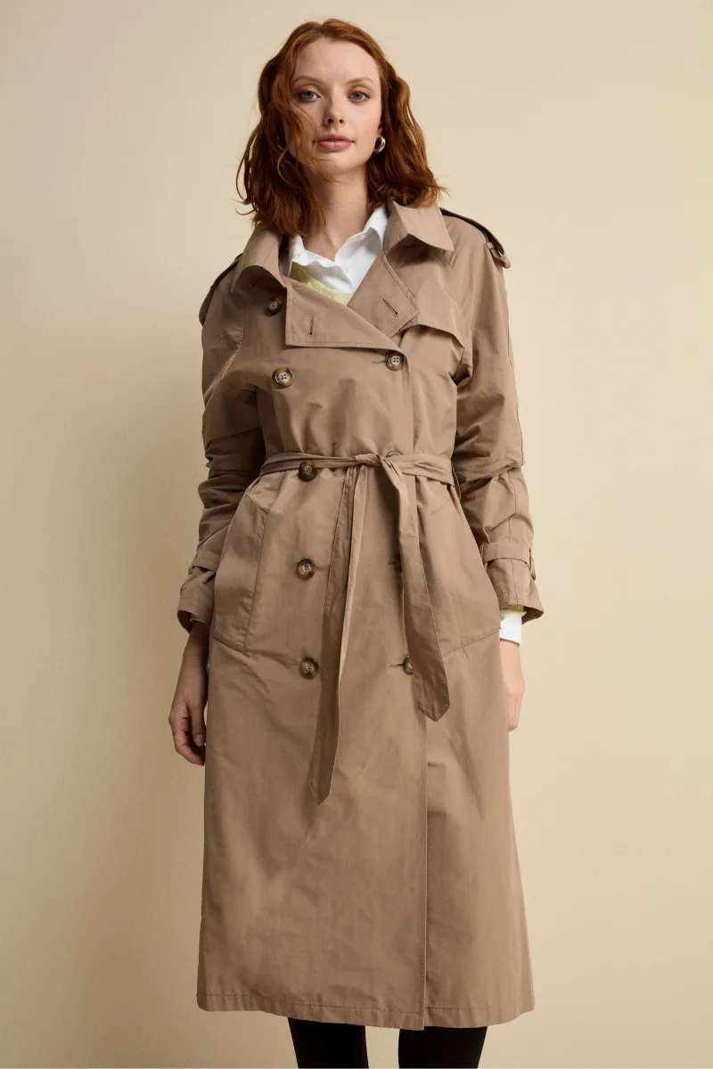 Trench Lungo Doppiopetto con Cintura – CAMMELLO