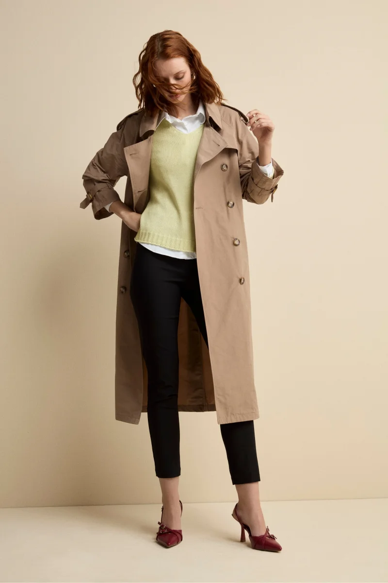 Trench Lungo Doppiopetto con Cintura, un capo must-have per il guardaroba primavera-estate di ogni donna. Realizzato in morbido misto cotone, questo trench lungo da donna si distingue per la linea strutturata e la vestibilitร over. Il colletto aperto, le mostrine su spalle e polsi, lo spacco posteriore e la cintura in vita valorizzano la silhouette con un tocco deciso e contemporaneo mentre le tasche laterali aggiungono funzionalitร al design. Parte della collezione IL Lanificio, รจ un capo versatile Made in Italy, perfetto sopra outfit eleganti o casual per completare ogni look con stile. La modella รจ alta 177 cm e indossa la taglia 42.