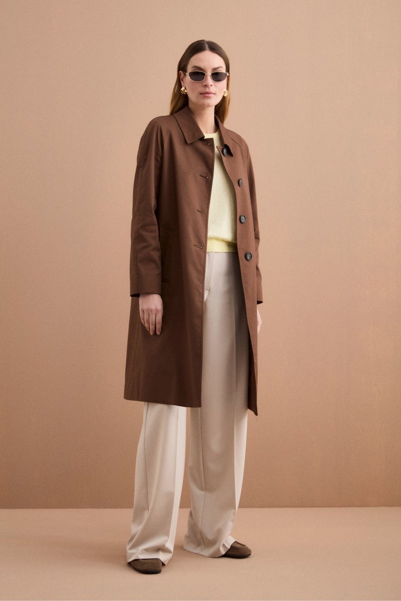 Trench Monopetto Foderato con Collo a Camicia – BRUCIATO