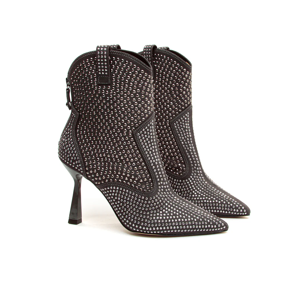 REF: 2134-A2 Tronchetto con forma a punta, ricoperto di strass. Presenta piccole imperfezioni. Contattaci via mail a [email protected] oppure via whatsapp allo 3783038877 se volete ricevere maggiori dettagli. Consegna entro 2/5 giorni lavorativi FITTING: Questo modello ha una calzata regolare. GUIDA ALLE TAGLIE