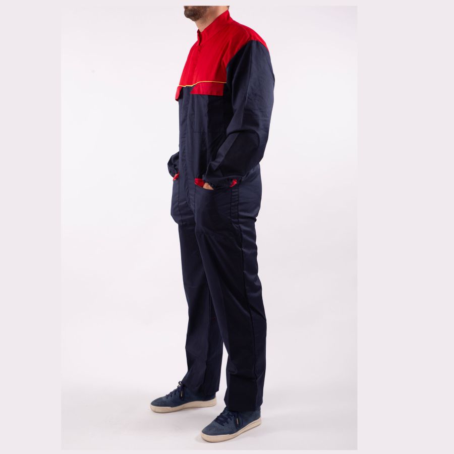 Tuta da lavoro adatto per carrozzieri, meccanici e vari settori professionali, il tessuto morbido e mediamente leggero offrono una ottima vestibilitร e libertร di movimento, i taschini chiusi con cerniera e coperti da pattina garantiscono un contenimento sicuro degli oggetti.