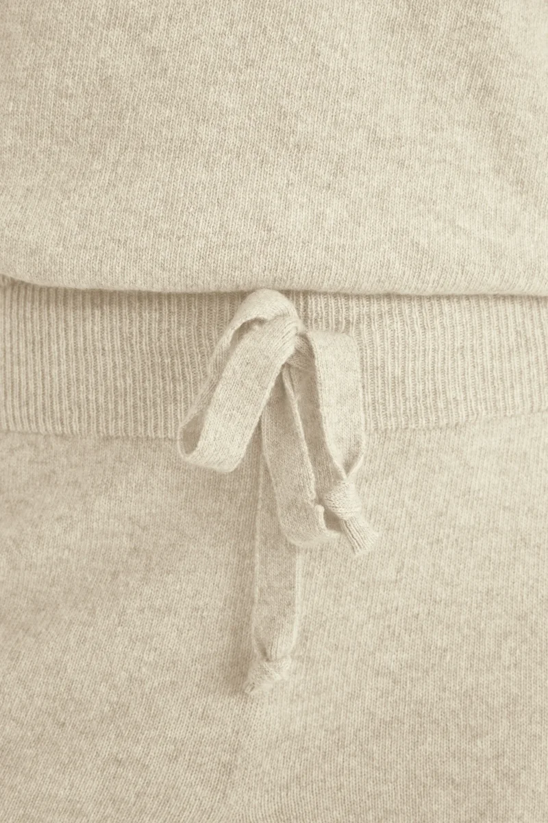 Non lasciarti sfuggire la possibilitร di avere nel tuo guardaroba un completo che unisca la comoditร di una tuta allโeleganza e calore che solo un 100% cashmere realizzato in Italia ti puรฒ dare. La felpa dispone di unโampia tasca frontale e un cappuccio con cordino. Il pantalone in maglia dal taglio dritto presenta un cordino coperto da coste per un extra comoditร . Perfetto anche come idea regalo. La modella รจ alta 176 cm e indossa la taglia 42.