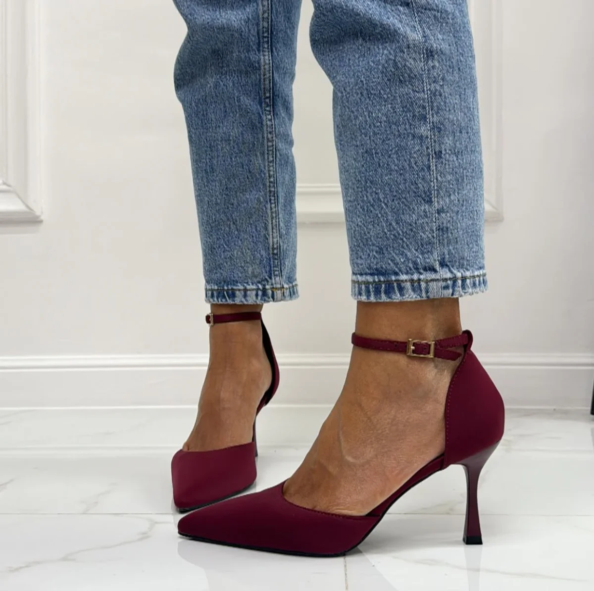 Alyson – Décolleté a Punta con Cinturino alla Caviglia Bordeaux