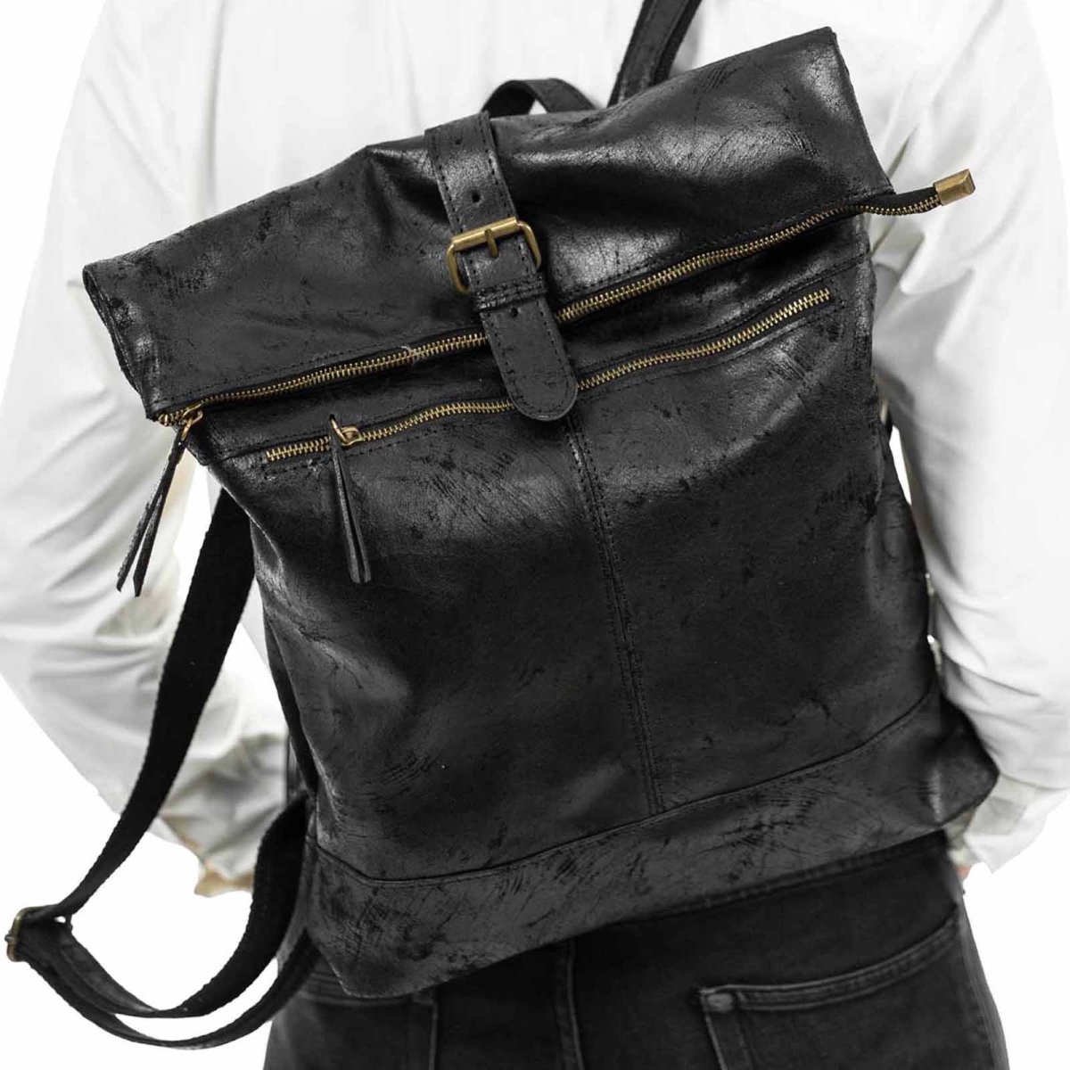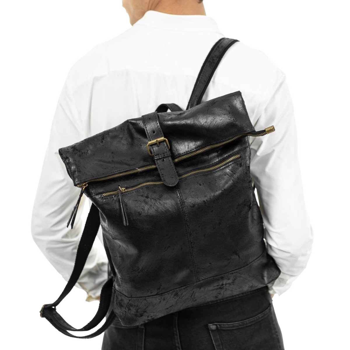 Zaino Borsa In Vera Pelle Uomo Dettagli Oro Rindway