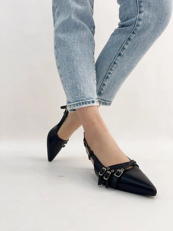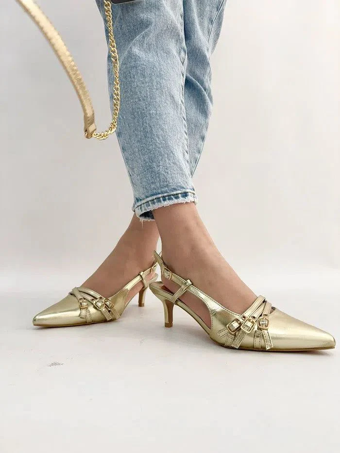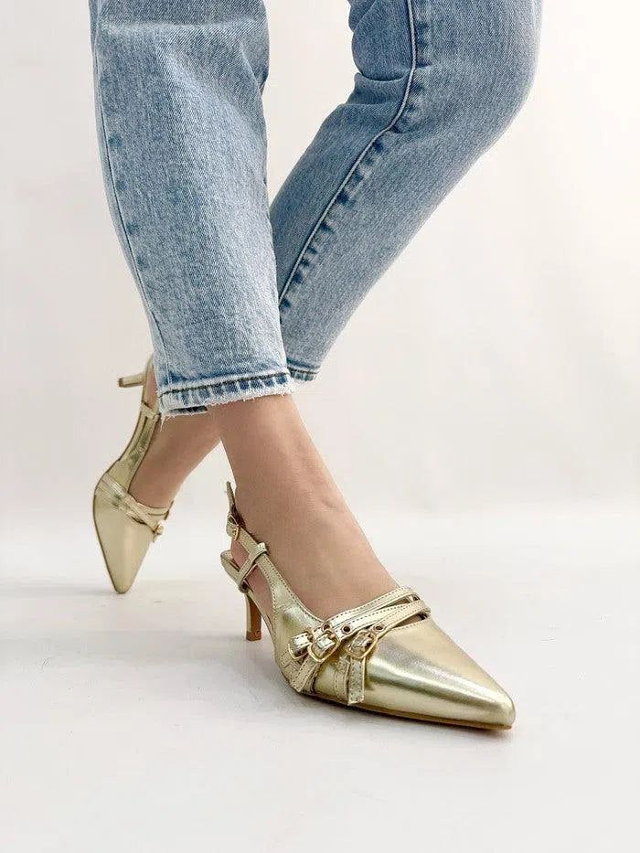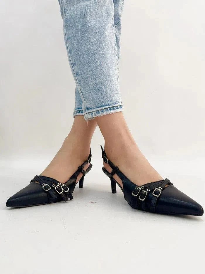 - Design versatile con cinturino slingback regolabile per una perfetta aderenza.